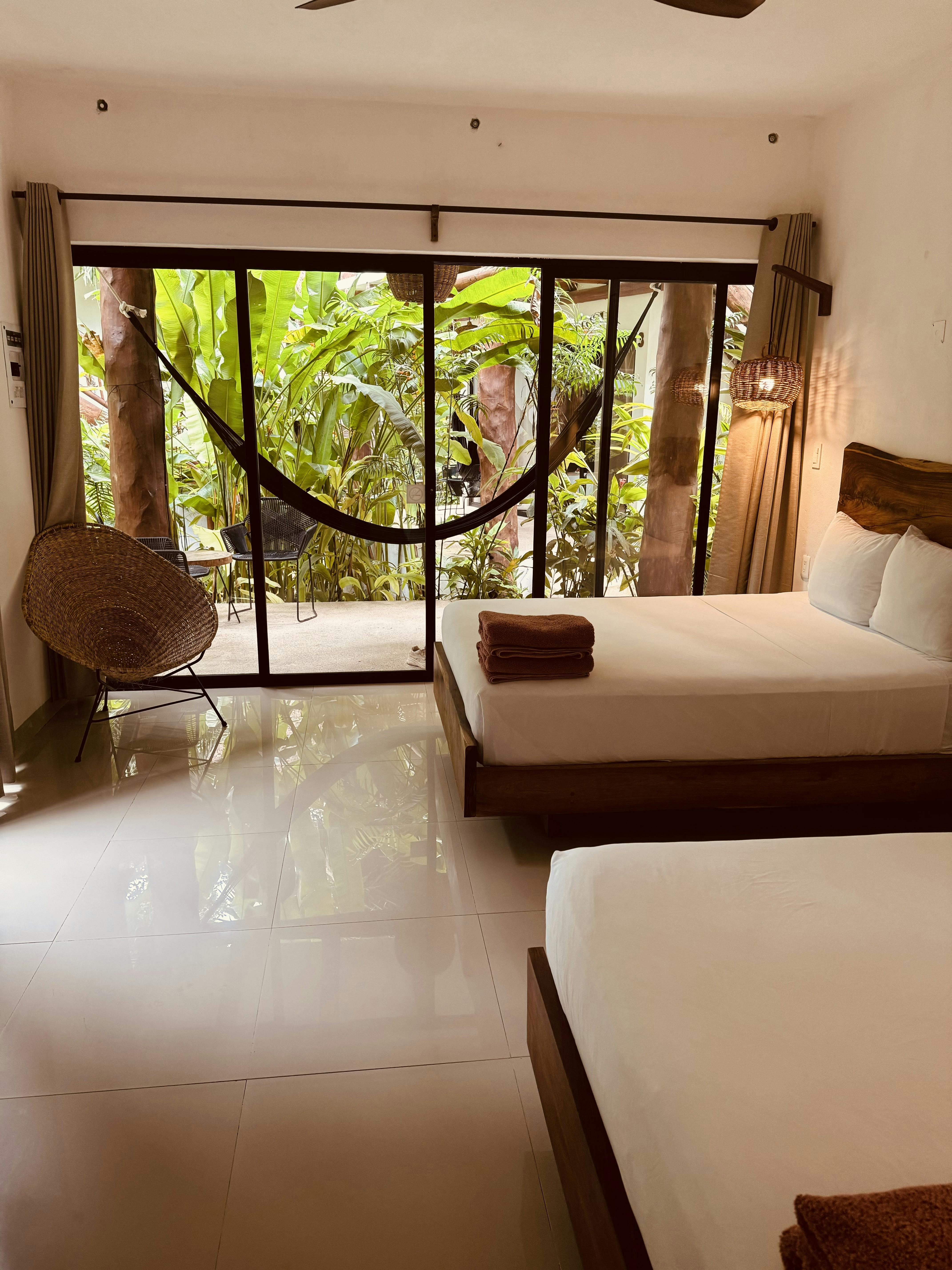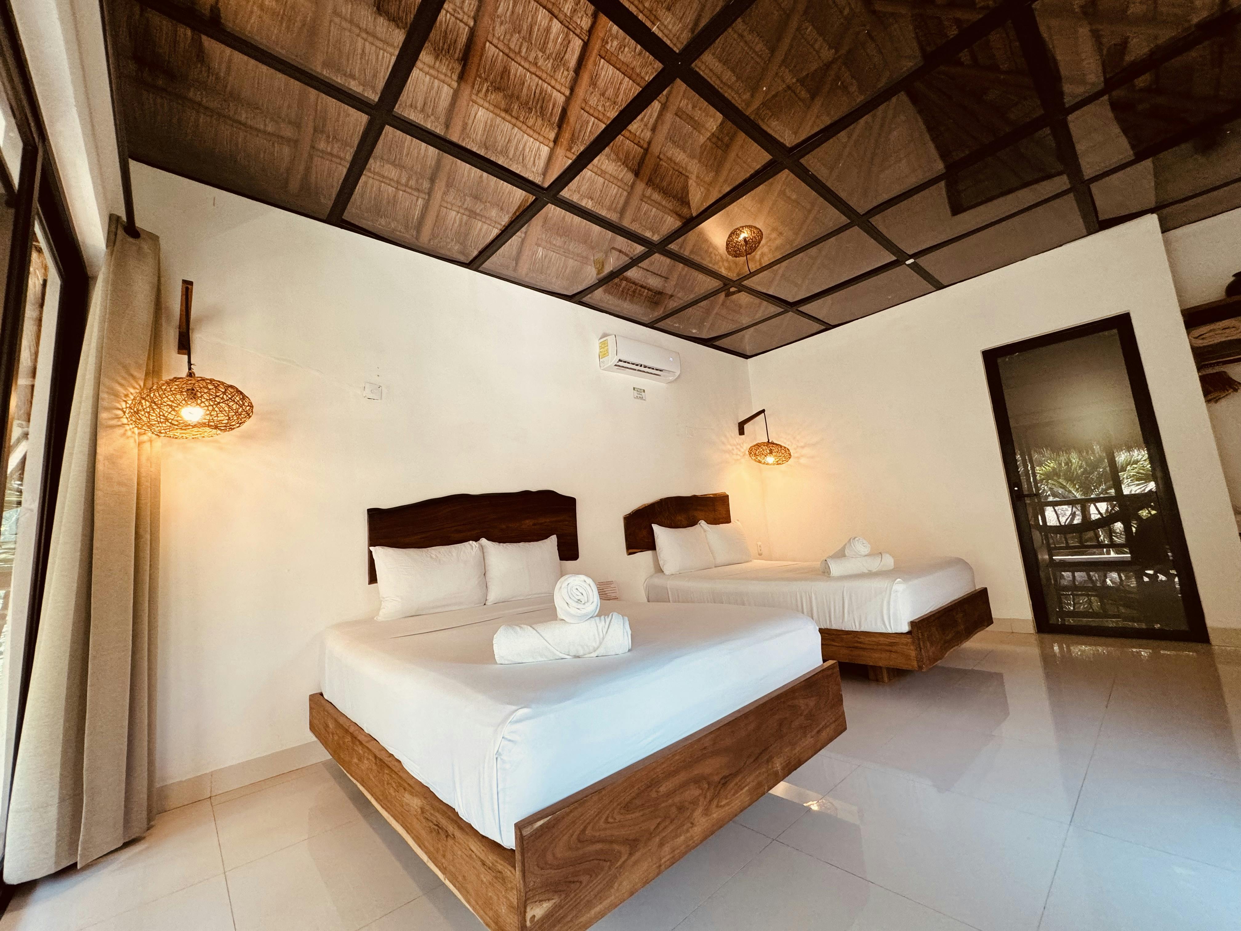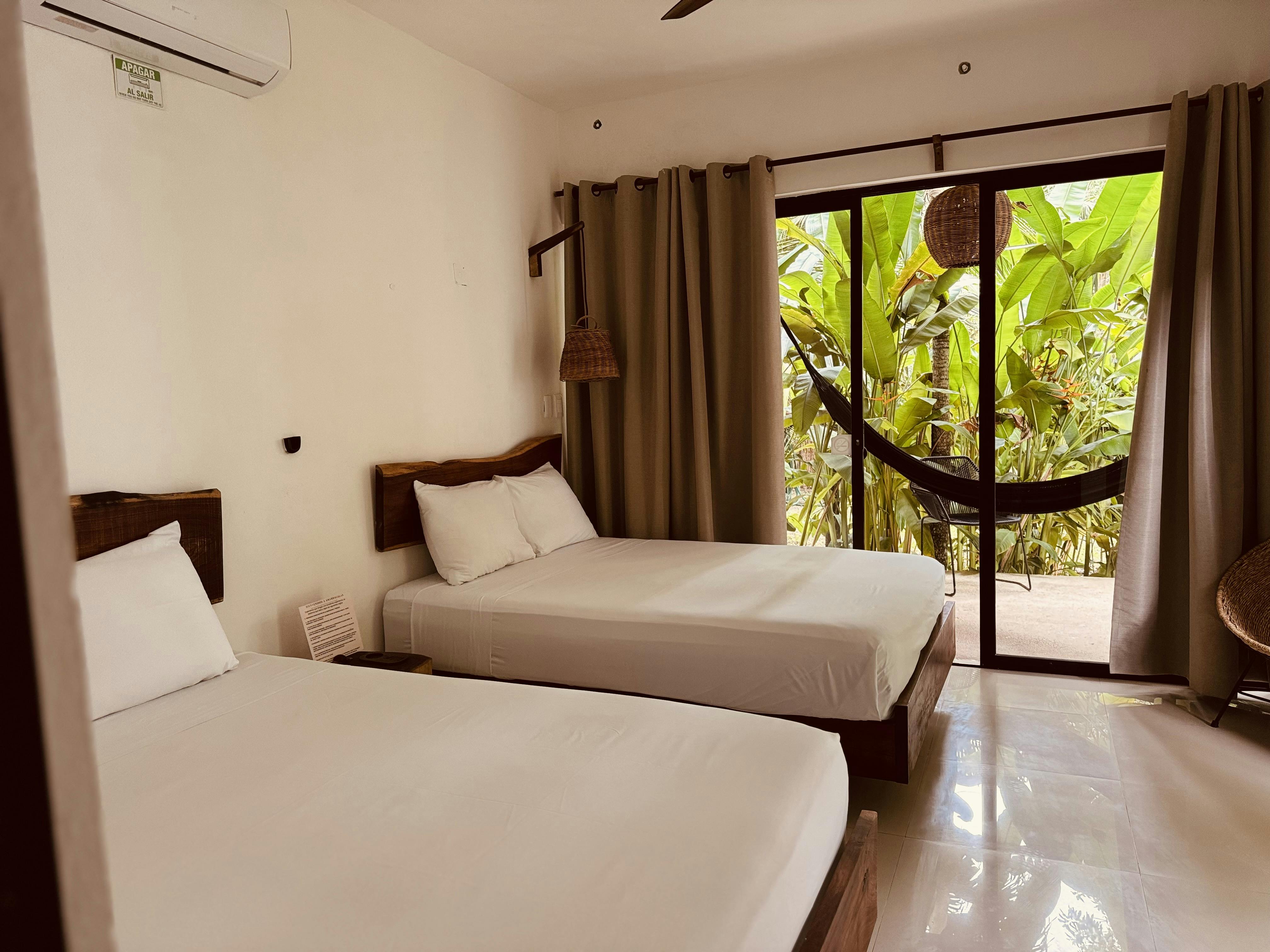Esta habitación cuenta con 2 cómodas camas matrimoniales, baño completo, terraza o balcón con vista al jardín. Todas las habitaciones son 100% libres de humo y su capacidad máxima es de 4 personas, cuenta con aire acondicionado y wifi gratis.